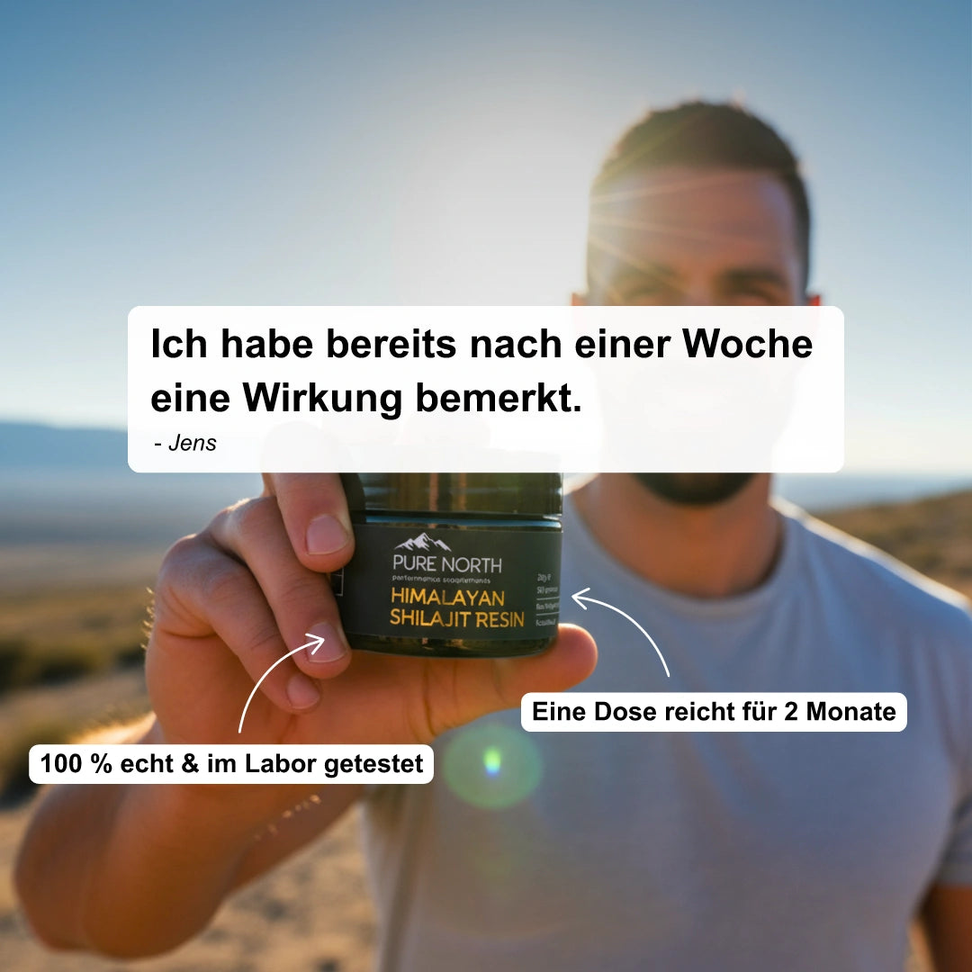 Unser Shilajit ist von höchster Qualität, da es in über 5400 Metern Höhe im Himalaya gewonnen wird und mindestens 78 % Fulvosäure enthält, im Gegensatz zu anderen Marken, die oft nur etwa 60 % enthalten. Das macht Pure North Shilajit extrem stark und effektiv.